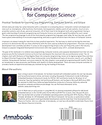 - Almost every job today has some interaction with a computer or a computing device. Computers come in all shapes and sizes such as smartphones, ATM machines, thermostats, test equipment, robotics, point-of-sale systems, cloud servers, projection systems, and, oh yes, personal computers. All of them need to be designed, built, and programmed. Having a good understanding of computer programming and Computer Science can provide a good foundation for one's career. The Java programming language is one of the most popular programming languages used today. By learning Java, you will have a good understanding of structured programming, and Java is a good vehicle to learn the basics of Computer Science. Employers are always looking for new-hires to have practical experience. The best way to stand out during the interview process is to demonstrate that you have a familiarity with the tools used by professional programmers. There are many Java development tools available, but when it comes to Java programming, Eclipse is the tool frequently used in the industry. Eclipse is a popular Integrated Development Environment (IDE) that supports Java, C/C++, and web development. This textbook combines Java programming, Computer Science, and a popular development tool that not only prepares you for the Computer Science curriculum but also beyond the classroom into your professional career. The 14 chapters start with the basics of how Algebra flows into computer programming, moves on to logical program flow, and then to Object Oriented Programming. After these fundamentals come the advanced topics of recursion, search, sort, and Big-O notation. Going beyond the basic curriculum material, the later chapters cover graphical programming with JavaFX, File I/O, an introduction to data structures, and finishes with JavaFX 2-D Game development. There are many computer activities to provide a hands-on experience and keep you involved during the reading of this book.