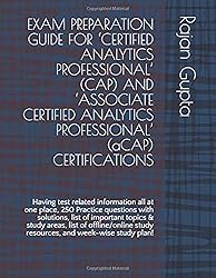 - The purpose of this book is to provide information related to the “Certified Analytics Professional (CAP)” and “Associate Certified Analytics Professional (aCAP)” exam conducted by INFORMS, USA. The information has been compiled from various sources available on the INFORMS website and other allied web sources. This book on CAP and aCAP exam preparation cover three major aspects related to the certification. Firstly, the information and history related to the CAP exam are given in the book. Secondly, the exam pattern, topic coverage, study time and various resources have been given with respect to the preparation of the CAP exam. Thirdly, 250 practice questions have been given in this book with solutions. These questions have been mapped with the CAP exam pattern under various domains.The objective of this book is to make aspirants aware of the pattern of the CAP exam; To give the aspirants an idea about topic coverage in the CAP exam; To give the aspirants an idea about pattern of question & options in CAP exam; Not to share the exact questions that appear in CAP exam; Not to claim that performing well in the practice questions will guarantee passing of the CAP exam.The solutions given in this book are correct as per the experts. Reader’s opinion may vary with those of experts. The material in this book is only an indication towards actual CAP test preparation and may not be related to actual questions or their solutions. Since the aspirant has to opt for the MOST appropriate choice of answer, so a lot of subjectivity is there. A question may have all the correct options, but aspirant will have to choose the BEST from the given options.This book covers up 250 questions with answers (and explanation) on the format of CAP exam as per the CAP handbook guidelines. It gives a detailed analysis of the responses along with the detailed list of topics to be studied for CAP exam preparation. A week-wise study plan for 16-20 weeks has been given to help the aspirants prepare for the exam. Moreover, a list of online and offline resources has been given in the book to prepare for the CAP exam, along with the topic list and glossary of important topics.