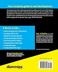 - Speak the languages that power the webWith more high-paying web development jobs opening every day, people with coding and web/app building skills are having no problems finding employment. If you're a would-be developer looking to gain the know-how to build the interfaces, databases, and other features that run modern websites, web apps, and mobile apps, look no further. Web Coding & Development All-in-One For Dummies is your go-to interpreter for speaking the languages that handle those tasks.Get started with a refresher on the rules of coding before diving into the languages that build interfaces, add interactivity to the web, or store and deliver data to sites. When you're ready, jump into guidance on how to put it all together to build a site or create an app.Get the lowdown on coding basicsReview HTML and CSSMake sense of JavaScript, jQuery, PHP, and MySQLCreate code for web and mobile appsThere's a whole world of opportunity out there for developers—and this fast-track boot camp is here to help you acquire the skills you need to take your career to new heights!