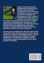 - This book was designed as a curriculum for a community center course to instruct and inspire young folks interested in computers and games on the use of Scrolling Game Development Kit 2. The book is written by the software's author and focuses on implementing a few different genres of 2D games in a format that supports both desktop and web browser interfaces. The software for developing the games requires Windows, but the games can run in most HTML5 browsers on any platform. Some example chapter titles includeCreate secret passagesCreate a Mini-mapRiding platformsLaddersBuying an itemPlanting dynamiteAnimating the environmentCut scenesAutomatically scrolling Sound effectsThe book is filled with colorful images and screenshots to keep the readers interest and provide inspiration while following through the various topics. An 11 page index and 1-page illustration index will help readers re-locate topics of interest quickly when the printed version is all that's available.The book's online companion content allows the reader to fully appreciate all that can be done without having to follow through all the tedium of creating content from scratch. Nine fully functional sample projects are used as reference material as the book describes numerous possibilities using the features illustrated by the projects. All the projects can build and run in a web browser.