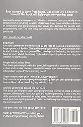 - Ever wanted to work from home? ..or better yet, a beach in Hawaii? This book will help you take your first step!Learning to program can open an unlimited number of doors, especially in the coming years. Everything we do in life is increasingly done with the assistance of computers and programming. This drives the demand for people with programming skills. The best thing about it is you only need your laptop and you're set!Who should buy this book?Beginners It is very common to be intimidated by the idea of learning a programming language such as Python. That's where this book comes in, you will learn how to start thinking like a programer! This book lays out the basics, and you don't have to worry about becoming confused and spending hours searching the internet for clarification. People with Limited Time This book gets straight to the the point, telling you what you need to know in a clear and concise manner. No need to waste your time reading irrelevant information to your Python learning quest! Those That Want to Start Thinking Like A Programer This book shows you how programmers quickly flesh out their coding solution to a problem before ever doing any actual coding. Anyone Looking to Escape the Rat Race This book can help you begin your programming journey in a fast a efficient manner, allowing you to escape your 9-5 job! Programming is one of the few skills you can do thousands of miles away from the office, meaning you can work part-time earning american dollars whilst living like a king by leveraging the exchange rate! Here is a sneak-peak at some of the things you'll understand:Why Learn Python?Getting Started & The Installation ProcessOperators, Operands and OperationsVariablesIntegers, Strings and FloatsPerforming Operations on VariablesNaming Conventions and CommentsHandling InputsLoopsIf, Then StatementsNestingLogic GatesPseudocodeLists, Tuples and DictionariesUnderstanding Functions and ‘Object Oriented’ ProgrammingModules, Graphics and MoreApplying your Python Skills on ProjectsAnd don't miss the little bonus at the end for youTAKE ACTION TODAY and start your Python Programming journey with us!