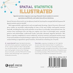 - Spatial statistics empowers you to go beyond visual analysis to answer questions confidently and make data-driven decisions.Thanks to the data and computational power now at our fingertips, data science is in every aspect of our lives. But with so many algorithms and buzzwords floating around, where do you start to solve complex problems or figure out where to go next?There has never been a more exciting time to learn about spatial statistics. Spatial statistics uses an aspect of geography that helps you quantify patterns and relationships so that you can feel confident in your analysis.Spatial Statistics Illustrated is an introductory book for learning the concepts behind the powerful spatial statistics tools in ArcGIS.With approachable explanations and uncomplicated drawings, Spatial Statistics Illustrated gives readers an accessible understanding of some of the most widely used spatial statistics methods, including how they work and when to use them. In a friendly, conversational tone, the authors share techniques that can help you explore your data in meaningful ways; quantify patterns and relationships; understand trends, and make informed, impactful decisions.This book has something for everyone analyzing data, including:seasoned data scientists looking to explore the value that spatial analysis offersGIS analysts looking to expand their spatial statistics skill setnew GIS users discovering the value of spatial statisticsSpatial Statistics Illustrated is a perfect complement to more traditional, technical statistics and spatial statistics texts and is also ideal as supplemental reading for academic courses.Based on the popular series of Spatial Statistics workshops presented by the authors at the annual Esri User Conference, Spatial Statistics Illustrated welcomes readers into the unparalleled world of spatial statistics.