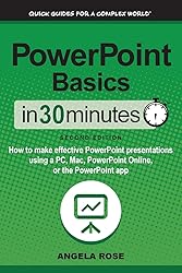 - Revised second edition - order now! When you're giving a slide presentation, a positive impression can make a sale or win over an audience. The revised and updated second edition of PowerPoint Basics In 30 Minutes can help you connect with audiences and make great presentations that get real results. This unofficial PowerPoint user guide covers the basic features of PowerPoint (part of the Microsoft 365 suite), PowerPoint Online, and the PowerPoint mobile apps, including PowerPoint for Android and PowerPoint for iOS. The PowerPoint manual also demonstrates how to use some of PowerPoint's most powerful features and tools, such as:Premade PowerPoint templates with gorgeous backgrounds and fonts.Custom PowerPoint layouts that fit your personality or corporate identity.Special PowerPoint formatting and design options.PowerPoint Designer, a feature that can help make boring slides look more interesting.Tools to place photos, video, and audio onto slides.Shapes, graphs, tables, and SmartArt.Graceful transitions between PowerPoint slides.PowerPoint animations that can make text and other elements come to life.Proofing tools for spelling and review.PowerPoint collaboration features that make it easy to work with colleagues or classmates.Exporting PowerPoint PDFs, online versions for the Web, and package presentations to share with others.Creating paper copies and printed PowerPoint handouts.Showing your presentation with a mouse or mobile device, or using a PowerPoint remote or PowerPoint clickerAuthor Angela Rose also gives tips on how to communicate more effectively using PowerPoint decks. Whether you are giving a business presentation, preparing a lecture for a class or seminar, or using Microsoft PowerPoint for personal use, PowerPoint Basics In 30 Minutes (2nd Edition) can help you create a better-looking presentation that makes a big impact.About IN 30 MINUTES Guidesi30 Media is the publisher of the award-winning IN 30 MINUTES series - quick guides for a complex world. Thousands of readers turn to the series to understand mildly complex topics, ranging from genealogy to computer software. The tone is friendly and easy to understand, with step-by-step instructions and lots of examples. Top-selling titles include Google Drive & Docs In 30 Minutes, Twitter In 30 Minutes, and LinkedIn In 30 Minutes. For more information about the series, visit in30minutes.comi30 Media Corporation and IN 30 MINUTES Guides are not associated with other brand names, product names, or trademarks cited in this book, including Microsoft Office®, Office 365™, PowerPoint®, or OneDrive®. PowerPoint Basics In 30 Minutes is an independent publication and is not authorized, sponsored, or otherwise approved by Microsoft Corporation.Buy it today!