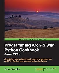 - Over 85 hands-on recipes to teach you how to automate your ArcGIS for Desktop geoprocessing tasks using Python Key Features:Become a more efficient GIS professional by automating your geoprocessing tasks with Python and ArcGIS DesktopIn addition to the fundamentals, learn advanced, in-demand GIS skills sought by many employersStep-by-step recipes that provide real-world solutions to common geoprocessing tasks Book Description:The book kicks off with the fundamentals of starting to use Python with ArcGIS, followed by recipes on managing map documents and layers, including how to find and fix broken data links in these files. In the second part of the book, you will learn to create custom geoprocessing tools and how to use the Attribute and Location tools to select specific features. The third part of the book covers topics for advanced users including the REST API, and also teaches you how to use Python with ArcGIS Pro. The book finishes with appendices covering how to automate Python scripts, and the five things that should be at the back of every GIS programmer's mind. What You Will Learn:Manage your map document files, layer files, feature classes, and tablesProgrammatically update layer properties and symbologyFind and fix broken data links in your map document filesAutomate map production, printing, and the creation of PDF map booksDevelop custom geoprocessing tools that can be shared with othersQuery and select data from feature classes and tablesCreate new feature classes or tables and add, update, and delete recordsCustomize the ArcGIS for Desktop interface with Python add-ins Who this book is for: