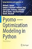 - This book provides a complete and comprehensive guide to Pyomo (Python Optimization Modeling Objects) for beginning and advanced modelers, including students at the undergraduate and graduate levels, academic researchers, and practitioners. Using many examples to illustrate the different techniques useful for formulating models, this text beautifully elucidates the breadth of modeling capabilities that are supported by Pyomo and its handling of complex real-world applications. In the third edition, much of the material has been reorganized, new examples have been added, and a new chapter has been added describing how modelers can improve the performance of their models. The authors have also modified their recommended method for importing Pyomo. A big change in this edition is the emphasis of concrete models, which provide fewer restrictions on the specification and use of Pyomo models. Pyomo is an open source software package for formulating and solving large-scale optimization problems. The software extends the modeling approach supported by modern AML (Algebraic Modeling Language) tools. Pyomo is a flexible, extensible, and portable AML that is embedded in Python, a full-featured scripting language. Python is a powerful and dynamic programming language that has a very clear, readable syntax and intuitive object orientation. Pyomo includes Python classes for defining sparse sets, parameters, and variables, which can be used to formulate algebraic expressions that define objectives and constraints. Moreover, Pyomo can be used from a command-line interface and within Python's interactive command environment, which makes it easy to create Pyomo models, apply a variety of optimizers, and examine solutions.