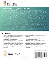 - PostgreSQL 17 QuickStart Pro is the definitive hands-on, practical book for professionals at every level, from entry-level administrators to seasoned experts. It provides rapid learning and practical implementation of PostgreSQL 17, focusing on the latest features and best practices to effectively manage, configure, and optimize PostgreSQL databases—and it does so effectively.The book begins by using the Titanic dataset to illustrate practical examples of upgrade strategies, post-upgrade validation, and database configuration. Next, it covers cluster administration, configuration settings, and performance tracking. You will master the management of permissions and roles through intricate role hierarchies, authentication methods, and security settings. Next, we'll optimize server performance, plan queries, and manage resources based on real performance data.The next section dives deep into complicated data types, bulk data operations, advanced indexing methods, and the creation of triggers and functions, all with an emphasis on effective data management. Next, you will learn about table partitioning strategies, performing physical and logical backups, database restoration, and process automation using BART. We then move on to streaming replication, where we will configure, administer, and monitor replication to ensure optimal uptime. Finally, we will explore point-in-time recovery (PITR), which allows us to restore databases to specific points in time by replaying WAL logs. In short, this book will equip database administrators with the knowledge and skills to confidently handle PostgreSQL 17 databases.Key LearningsUpgrade and configure PostgreSQL 17, including post-upgrade validation and configuration.Learn PostgreSQL architecture, memory models, and cluster management.Use hierarchical permissions, authentication, and security for advanced role management.Tune server performance with query planning, resource management, and configuration tuning.Effectively use PostgreSQL extensions, JSONB, and arrays.Optimize queries with GIN, GiST, and BRIN indexing.Master table partitioning for large dataset performance and scalability.Automate physical and logical backups and confidently restore databases.Manage PostgreSQL streaming replication for high availability and automatic failover.Restore data using WAL logs and Point-in-Time Recovery.Table of ContentUpgrading and Setting up PostgreSQL 17Expert Database Cluster AdministrationAdvanced Database and Role ManagementConfiguration and Performance TuningEffective Data ManagementTable Partitioning StrategiesBackup and Recovery Best PracticesStreaming Replication and High AvailabilityPoint-in-Time Recovery