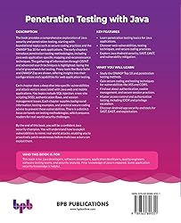 - DescriptionThe book provides a comprehensive exploration of Java security and penetration testing, starting with foundational topics such as secure coding practices and the OWASP Top 10 for web applications. The early chapters introduce penetration testing methodologies, including Java web application-specific mapping and reconnaissance techniques. The gathering of information through OSINT and advanced search techniques is highlighted, laying the crucial groundwork for testing. Proxy tools like Burp Suite and OWASP Zap are shown, offering insights into their configurations and capabilities for web application testing.Each chapter does a deep dive into specific vulnerabilities and attack vectors associated with Java web and mobile applications. Key topics include SQL injection, cross-site scripting (XSS), authentication flaws, and session management issues. Each chapter supplies background information, testing examples, and practical secure coding advice to prevent these vulnerabilities. There is a distinct focus on hands-on testing methodologies, which prepares readers for real-world security challenges.By the end of this book, you will be a confident Java security champion. You will understand how to exploit vulnerabilities to mimic real-world attacks, enabling you to proactively patch weaknesses before malicious actors can exploit them.Key Features● Learn penetration testing basics for Java applications.● Discover web vulnerabilities, testing techniques, and secure coding practices.● Explore Java Android security, SAST, DAST, and vulnerability mitigation.What you will learn● Study the OWASP Top 10 and penetration testing methods.● Gain secure coding and testing techniques for vulnerabilities like XSS and CORS.● Find out about authentication, cookie management, and secure session practices.● Master access control and authorization testing, including IDOR and privilege escalation.● Discover Android app security and tools for SAST, DAST, and exploitation.Who this book is forThis book is for Java developers, software developers, application developers, quality engineers, software testing teams, and security analysts. Prior knowledge of Java is required. Some application security knowledge is helpful.Table of Contents1. Introduction: Java Security, Secure Coding, and Penetration Testing2. Reconnaissance and Mapping3. Hands-on with Web Proxies4. Observability with SQL Injections5. Misconfiguration with Default Values6. CORS Exploitation7. Exploring Vectors with DoS Attacks8. Executing Business Logic Vulnerabilities9. Authentication Protocols10. Session Management11. AuthorizationPractices12. Java Deserialization Vulnerabilities13. Java Remote Method Invocation Vulnerabilities14. Java Native Interface Vulnerabilities15. Static Analysis of Java Android Applications16. Dynamic Analysis of Java Android Applications17. Network Analysis of Java Android ApplicationsAppendix