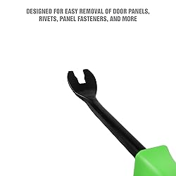 Variety of Uses: This door panel removal tool removes door panel clips and car interior lights, radios, trims, and dashboards Prevents Damage: This trim puller tool is constructed from high carbon steel and high quality chrome vanadium to prevent damage to upholstery and trim Long Lasting Panel Puller: These steel auto trim removal tools have a corrosion resistant chrome plated finish; Clip pry tool has a two piece design for added strength Easy To Use: The compact size of this clip removal tool makes it easy to work in tight spaces and reach automotive clips Efficient and Reliable: This door panel remover tool is one of the most versatile auto maintenance tools with the ability to remove many vehicle parts quickly and reliably
