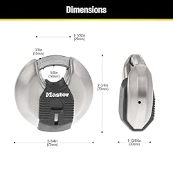 - The Master Lock Magnum M40XD Discus Padlock features a 2-3/4 in. (70 mm) wide stainless steel body for maximum strength, reliability and corrosion resistance. The fully shrouded design minimizes shackle exposure and protects against bolt cutter attacks. The 3/8 in. (10 mm) diameter octagonal shackle is 5/8 in. (16 mm) long and made of Tough-Cut boron-carbide, 50% harder than hardened steel, offering maximum resistance to cutting and sawing. The 4-pin cylinder prevents picking and the dual locking ball bearings provide maximum resistance against prying and hammering. The covered keyway offers maximum weather protection, and reinforced body bumper protects against scratches. The lifetime guarantee provides peace of mind from a brand you know and can trust.