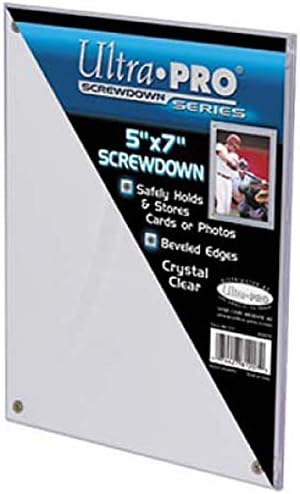 Screwdown holder for photos, postcards and cards up to 5" x 7" (127 mm x 177.8 mm) in dimension. Designed with two-piece ultra clear material and four-screw closure with one screw at each corner. Acid-free and no PVC.