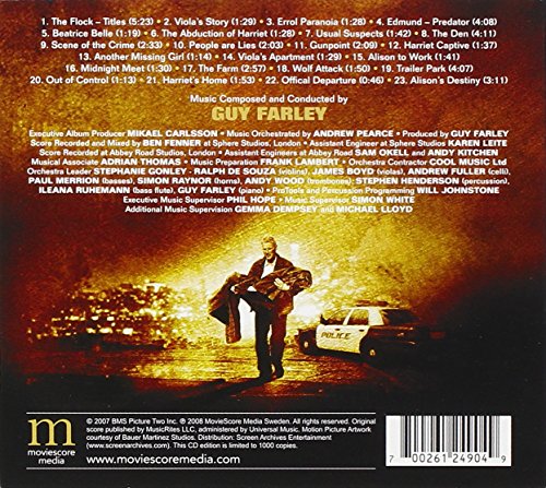 Exploring the darker side of his musical voice, Guy Farley (Land of the Blind and The Christmas Miracle of Jonathan Toomey) provides a truly ominous and frightening orchestral score for The Flock, a thriller starring Richard Gere and Claire Danes. In a style that will remind aficionados of Howard Shore's eerie genre scores (Seven and Silence of the Lambs), Farley's Flock music makes use of dark and dense orchestrations with subtle electronic elements ? but it is also yet another example of the composer's knack for thematic writing and several themes and motifs creates unity and coherence in the work. ""From the start I knew I was writing for orchestra primarily (42 strings, 8 brass, 2 bass flutes, low winds, harp, piano and percussion) but I wanted to incorporate sound design, electronic rhythmical programming and some off-kilter instruments from the Indonesian Gamelan orchestra,"" the composer explains in the album liner notes. ""My main theme was composed first for the character played by Richard Gere, Errol. Here was a man who had worked for 30 years for the state monitoring sex offenders, a man who, with little faith in the system or an offender's ability to reform, had become burdened, exhausted, paranoid, lost and imprisoned by it. I wanted to convey this in my opening theme written for strings only, a kind of requiem. I developed this idea as the score unfolded, which is why it is a very 'strings' led score."" This is our third project together with Guy, and definitely not our last!