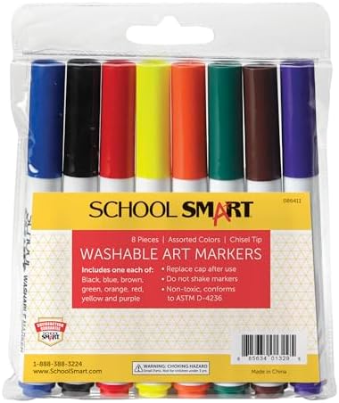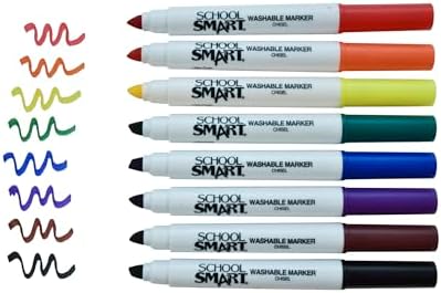 School Smart Chisel Tip Washable Markers for School, Home, and More, Assorted Colors, Pack of 8