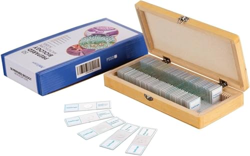 AmScope PS50 Prepared Microscope Slide Set for Basic Biological Science Education, 50 Slides, Includes Fitted Wooden Case