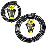 This listing is for two (2) Master Lock Python cables, one 6 ft (1.8m) and one 20 ft (6.2m) long, two keyed alike Python locking heads, four keys, and two velcro straps to hold excess cable for compact storage. If you purchase two or multiple sets of the same listing we will automatically key them all the same. ADJUSTABLE - It's the world's first adjustable locking cable that's always the right length for your application. These cable locks feature a one of a kind patented locking mechanism that holds the cable securely at any position from 1' (30cm) to 30' (9.1m) for infinite locking positions. Custom lengths up to 30 ft are available. TOUGH CABLE - 3/8 in diameter (10mm) cut resistant cables are made with braided steel for strength and flexibility. The cable is covered with a protective vinyl coating to protect against scratches. Thieves will think twice before trying to tinker with your valuables if secured with these Master Lock Python cables. INFINITE APPLICATIONS - Ideal for locking down multiple items at once; such as job site equipment, motorcycles, lawn furniture, ladders, boats, skis, generators, pickup truck cargo, spare tire locks, and much more! Cable end threads through places other cables cannot. TIEDOWN CONVENIENCE - cinches tight for improved security and no "flapping" within pickup bed or on trailer. Weather Tough aluminum alloy lock, cylinder shutter and vinyl coated cable. The Limited Lifetime Warranty provides peace of mind from a brand you can trust.