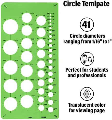 - Drawing & Drafting Template: Features commonly used circle diameters in the form of 41 circles ranging from from 1/16" to 1"