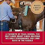 Patented, stainless steel Roll Snug Cinch Buckle allows for more leverage when tightening the girth Cast rather than welded, the buckle is seamless and streamlined for a modern look and added durability Features a shaped buckle tongue with a hooked tip that helps keep your latigo locked down in place Built by skilled craftspeople from quality materials including a durable poly webbing top, a 1/2" black polyester felt for your horse's comfort, and non-rust stainless steel hardware A favorite of trail riders, the felt lined Smart Cinch delivers reliable performance for long days in the saddle Nylon holder for easily securing your off billet Straight cinch measures 5.25" wide