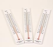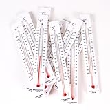 Set of 10 plastic thermometers Thermometers have a recessed glass tube Thermometer tube liquid is mercury free Thermometers only show Celsius temperatures Thermometer measures temperatures between -30° to 120°