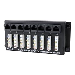 Able to connect (8) Ethernet lines to (8) ports on your internet router | Keeps wires neat and clean Wires are run to the data patch panel and terminated – simply add patch cables from RJ-45 jacks Standard 100 punch terminals which are color coded & simple to use | ONLY use 110 punchdown tool to avoid damage Wiring box mountable – high performance design to fit most wiring enclosures | Custom compatibility pins included to match enclosure mounting patterns Expand your capabilities by using 8 conductor Cat5e UTP cable