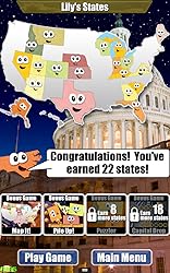 Hundreds of unique questions Interactive map and 50 state flash cards Choose any of the 50 friendly-looking states as your avatar Create up to six player profiles Collect all 50 states and track your progress on a personalized map Earn FREE bonus games: Map It, Pile Up, Puzzler and Capital Drop High resolution pictures of famous US landmarks All games are powered by a realistic physics engine Fun sound effects and music