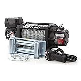 - Smittybilt 97517 winch has an IP68 waterproof rating, rated line pull of 17,500 pounds (7,954 kilograms) in a single line. Motor of 6.6hp series wound, the remote switch reaches 12 feet (3.7m) lead. The gear train is of revolutionary 3-stage planetary. Gear ratio is of 430:1, clutch: sliding ring gear, brake: automatic out-of-drum. Drum size: Diameter 3.45 inch, cable: 98.5 feet 3/8 inch diameter, cable type: braided steel wire rope, fairlead: 4-way roller. Recommended battery: 650CCA minimum for winching, battery leads: 25 square millimeter, 72 inch (1.83m). Finish: textured black. Weight: 132.2 pounds (59 kilograms); mounting bolt pattern: 10.0 inch x 4.50 inch, overall dimensions: 22.3"L x 7.5" W x 10.7"H.