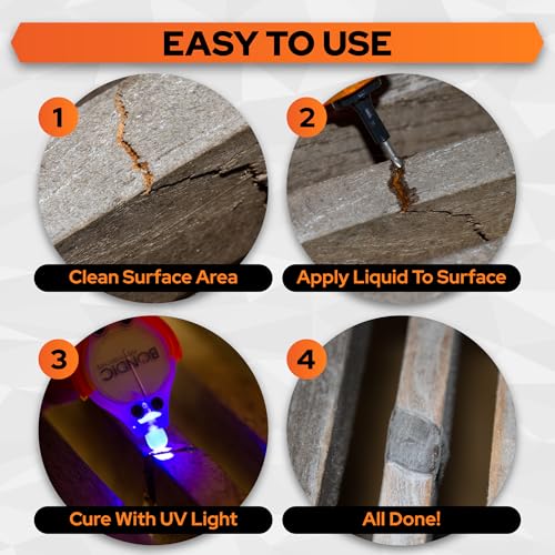 - QUICK REPAIRS AND EASY TO OPERATE: The incorporated LED UV light has an easy press button and when the liquid is exposed to the UV light it cures in seconds to form a permanent bond