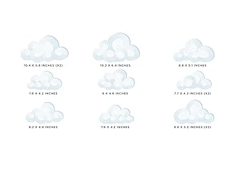 - These beautiful and modern cloud fabric wall decals come in a set of 12 clouds in various sizes. They are made from a high quality fabric material that is reusable and repositionable so they are super easy to apply.Product Dimensions: (width x height) Clouds (range) - 7.4" x 4.2" - 10.2" x 6.4"Sunny Decals offers a wide selection of fabric wall decals and wall stickers to brighten up any room in your home; all 100% Made in the USA. Each item is prepared by hand to ensure that our product lives up to our high standards. We use the highest quality non-toxic fabric adhesive material and inks, unlike most of our competitors that use toxic vinyl.Our material has a low tack adhesive so that the decals can be repositioned many times without leaving any sticky residue and they will stick to virtually any wall or sealed surface including textured walls. Unlike vinyl, our material will not shrink or curl and the matte finish looks like a mural has been painted on your walls. Installation is as easy as peel and stick with no extra tools needed.We offer free shipping on all orders over $100 anywhere in the USA.