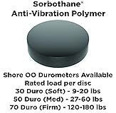 HARDNESS: These are available in 30, 50, and 70 durometers. The softer durometers have lower weight load ratings. VERSATILE: Rated to isolate 9 to 20 lbs per disc USES: They can be used as feet, stops, spacers and protectors in many different applications and industries. QUALITY: The unique urethane material won't crack, dry, scratch or mar surfaces and comes with a durable Sorbothane surface to maintain their structural integrity. INSTALLATION: Simply position the Sorbothane vibration isolation circular pads and press it into place.