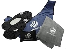 Includes one embroidered microfiber towel and one giant see saw for keeping your bowling ball clean Includes one microfiber grip sack for drying hands for consistent shots Includes one pair of shoe protectors to slip over bowling shoes for protection off the bowling approach LARGE: Fits Mens 7.5-9.5, Fits Womens 9+