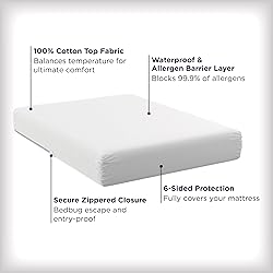 Cotton ULTIMATE COTTON WATERPROOF TOP: quiet cotton top fabric is backed by a waterproof layer, protecting your mattress from unexpected spills and stains CLEAN SLEEP PRODUCT PROTECTION: helps to keep your mattress protector fresher between washes. TEMPERATURE BALANCING TECHNOLOGY: wicks moisture and insulates to help keep you comfortable FLEXFIT ELASTIC CORNERS: ensure the perfect fit, tightly holding twin and full mattresses up to 14 inches deep, and Queen, King, and Cal King mattresses up to 17 inches. EASY CARE INSTRUCTIONS: machine wash hot with nonchlorine bleach when needed. Tumble dry on lowest setting separately to avoid protector damage. Dryer temps vary by brand, use the lowest setting and remove when dry. Do not iron.