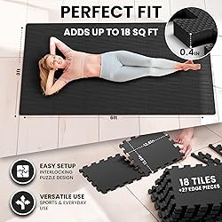 - Gym Flooring Set - Interlocking EVA Soft Foam Floor Mat, 18 Pieces Puzzle Rubber Tiles Protective Ground Surface Protection, Play Workout Exercise Mats Underlay Matting Sports Pool Home Fitness Garage