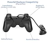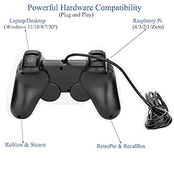 [Powerful Hardware Compatibility] - Support for Laptop/Desktop PC(Windows 11/10/8/7/XP) & Raspberry Pi(4/3/2/1/Zero), RetroPie & RecalBox & Steam & Roblox. it's a D-input USB wired controller, compatible with computer, micro-computer, many game console emulator systems. [Satisfy Your Desire for Games] - USB interface, plug and play, easy installation without software, works great for many old and new PC games. If it doesn't work, please read the product precautions in product description before using it. [Ergonomic Design] - Reliable 3D ergonomic design, USB cable: up to 4.9 feet(1.5 meters) long, connected to your game equipment in a sufficient visual range, comfortable feeling, it's not easy to fatigue your hands. [Ultimate Game Experience] - Dual vibration feedback motors, Analog + Digital dual setting, sensitive fire buttons, handy manipulation, super anti-sweat, it will give you a more realistic gaming experience. [Worry-free Purchase] - Not only you get a controller for PC that connect to your device via USB Cable, but also you will get an unconditional satisfaction guarantee and lifetime warranty. don't hesitate to contact us whenever you need assistance.