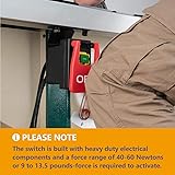 INCLUDES: 120V Paddle Switch with removable safety lock key and pre-wired cords for easy setup HANDS-FREE OPERATION: Features a large, red emergency stop paddle that can be easily activated with your knee, thigh, or hip – eliminating the need to reach under your table. Provides fast power cut-off for improved safety and workflow efficiency in any workshop environment. MAGNETIC SAFETY FEATURE: Equipped with a magnetic switch that prevents automatic restart after power loss or outage. Ensures your tools remain off until manually restarted, protecting both operator and equipment. WIDE COMPATIBILITY: Rated at 120V, 9A, up to 1/2 HP – compatible with routers, table saws, drill presses, band saws, and other woodworking machines. Works as a replacement paddle switch for popular tool brands including Craftsman, Shop Fox, and Grizzly. Actual compatibility may vary depending on the motor's startup current and power draw, please confirm your tool's specifications before installation. INSTALLATION: Fits POWERTEC 71834 deep gang boxes and standard gang boxes with extension rings. Installation requires 6-32 screws and nuts to replace the original M4 hardware (6-32 hardware not included). SAFETY CERTIFIED: Single-phase switch rated to UL/CSA standards with heavy-duty cords tested for reliability. Provides professional-grade safety compliance for both home and commercial woodworking applications.