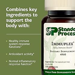 Immune Support with Essential Nutrients: Immuplex is an excellent source of zinc, iron, folate, and selenium; these ingredients aid healthy immune system response functions Mineral Support Supplement: This immune support supplement includes vitamins B12, B6, A, C, and E to support white blood cell and antioxidant activity Immune Health Supplement Dosage: Take two immune support capsules per meal, or as directed by a medical professional Clean Label Whole Food Supplement: This supplement with iron and other minerals is gluten-free, non-dairy, and non-soy Standard Process: High-quality products that work the way nature intended