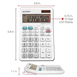 - 10-digit calculator features an extra-large LCD that displays crisp, clear digits to prevent reading errors. Durable keys are appropriately spaced for fast, accurate data entry. Cost-sell-margin keys simplify profit margin calculations by allowing you to enter two variables and automatically receive the third variable. Backspace key allows you to make quick, single-digit corrections for time-saving use. Twin-power operation runs on solar energy with a battery backup to provide consistent, reliable performance in any environment. Desktop calculator also includes currency conversion functions, automatic tax keys, percent key, backspace key, four-key independent memory, automatic power down and more.