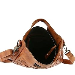 - *This woven handbag strikes a stylish balance between structure and sleekness *Chrome-free vegetable-tanned leather material *Hand-woven front, back, bottom and side details *Metal stud accents *Built-in carry handle *Adjustable, removable crossbody strap *Inside zip and slip pockets *14"Lx4"Dx12"H *Handmade in Leon, Mexico