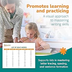 - This unique designed workbook composes both tracing and writing for 100 sight words and 30 simple sentences. THE Best VISUAL handwriting workbook help beginners learn sight words while improve their handwriting. High quality paper helps enjoyment of writing & learning. Grade: PreK - 1st Grade. 80 pages 60LB strong recycle paper, print on both sides. Pad size: 8.5 x 11 inch / 21.59 cm x 27.94 cm with Paper Board backing Block Patent Pending.