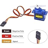 SG90 9G digital Servo - Miuzei 9g servo motor for remote control helicopters, micro robot, robot arm and boats. Fit for ALL kinds of R/C car and also make electronics DIY compatible with Arduino, Raspberry Pi. Mini Servo - small sg90 9g servo motor Kit steering micro small mini metal gear digital rc car plane parts boat robot arm hand helicopter 4Pcs airplane remote control DIY 180 degree high speed torque mg90 scx24 vehicle plugs wiresservo motor compatible with JR and Futaba interface. Micro servo running speed (at no load) : 0.09 sec/60° (4.8V) 0.08 sec/60°(6V). Running angle: 180 degree. Micro Servo Motor - Stall Torque (4.8V): 19.6 oz /in (1.4kg/cm). Dead band width: 5 usec. Operating Voltage: 4.8V-6.0V. Application Fields -Servos used for fixed-wing, helicopter, KT, glider, small robot, robotic arm and other models. Note - Starting current of the analog servo motor should be over 1A and servo sg90 are analog servos need to continuously provide a PMW signal, then it will be work normally.