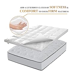EXTRA THICK COMFORT: Experience cloud-like softness with this queen-size plush mattress topper, generously filled with down alternative gel-fiber, making it the perfect addition to a firm mattress for ultimate sleep comfort. COOLING & BREATHABLE: The soft brushed polyester fabric and breathable gel-fiber filling help regulate temperature, making it a great alternative to heat-retaining memory foam or feather-down toppers—no more sweaty nights! FULL BODY SUPPORT: Ideal for back, side, and stomach sleepers, this ultra-comfortable pillow top mattress topper provides extra cushion and relief for shoulders, back, and hips, helping to alleviate pain and improve sleep quality. SECURE FIT: Featuring 4 corner elastic straps and box quilting design, this topper adapts to mattresses from 6" to 22" deep, ensuring a secure fit and preventing the filling from shifting while you sleep. EASY CARE & MAINTENANCE: Machine washable and easy to maintain, simply tumble dry on low heat to fluff the topper on arrival. For extended durability, cover with a fitted sheet or mattress protector and wash bi-annually.