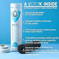 - NO MORE EXPENSIVE SINGLE USE PLASTIC WATER BOTTLES: The Epic Smart Shield saves the Earth over 5,000 single-use plastic water bottles from our landfills & oceans. This USA-made eco-friendly organic coconut shell-based solid carbon block filter is an environment-friendly filtration media that is approved & certified to 3 NSF/ANSI drinking water standards. Want this filter technology in a filtered water bottle? Visit our Amazon store @ www.amazon.com/epicwaterfilters