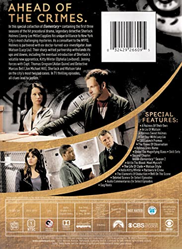 Elementary: Seasons 1-3As a consultant to the NYPD, Holmes is partnered with ex-doctor-turned-ace-investigator Joan Watson. Their sharp-witted partnership withstand its ups and downs, including the eventual introduction of Sherlock's volatile new apprentice, Kitty Winter. Joining forces with Capt. Thomas Gregson and Detective Marcus Bell, Sherlock and Watson take on the city's most twisted cases. In 71 thrilling episodes, all clues lead to justice.