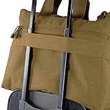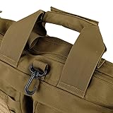 100 % Polyester Made in the USA or Imported Capacity (approx.): 15 litres (936 Cu In). The overall number of pockets: 3 external, 5 internal. Large zippered main compartment with two zippered pockets and various sleeve compartments with hook-and-loop closure Two spacious external pockets with hook-and-loop closure. Large MOLLE field with loop field for patches. Large zippered rear compartment Luggage handle pass-through. Detachable and adjustable shoulder strap with padded pad Top carry handle. Carabiner on the front Dimensions: 13"x18"x8" (33x45.7x20.3cm). Weight: 780g. Material: 100% Polyester