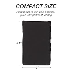 Sleek & Professional Look – Mini pocket notepad organizer with black faux leather cover with accent stitching for a clean and professional appearance Compact Design – The compact design of this pocket notebook is small enough to fit in your shirt or pants pocket but large enough to hold and write comfortably Multipurpose – Mini jotter notepad organizer is perfect for first responders, taking notes while traveling, salesman closing the deal, police officers, and many others Reusable – Easily remove the notepad when it is used and replace it with another memo pad up to 2 ½” x 4 ¼”. Versatile– Memo book also includes two business card pockets and pen loop help to keep items together and you well prepared