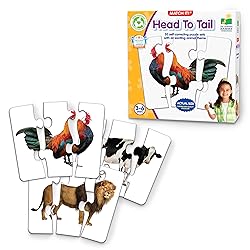 - This colorful set of 20 animal puzzle cards provides children with an excellent introduction to the animals. Each card features a picture of an animal’s head, mid section, and the animal’s tail. Simply match the heads, mid section and tails to complete the puzzle. The puzzles are self-correcting as no two puzzle cuts are the same. Ages 3+