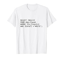 Funny Sql code programmer geek shirt featuring code to select your shirt from your closet. Gift for birthdays or any occasion Lightweight, Classic fit, Double-needle sleeve and bottom hem