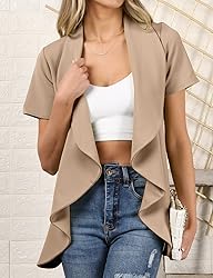 DOUBLJU Casual Draped Ruffles Blazer Short Sleeve Basic Open Front Cardigan Jacket for Womens with Plus Size Work Office Suit