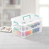 Sterilite 4-Pack Stack & Carry, 2 Layer Handle Box for Home & Office Storage - Clear Base & Lid with Color Latches, Organizer for Art & Craft Supplies, Sewing Tools or 8.5" x 11" Paper