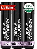 Moroccan Magic Organic Lavender Vanilla Lip Balm 3 Pack | Ultra-Hydrating Argan & Essential Oil Lip Moisturizer + Vitamin E | Natural Chapstick for Dry Lips | Smooth, Non-Toxic | Organic Lip Balm
