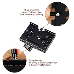 - Quick release plate kit is designed to DSLR camera switching four shooting mode quickly as your needs. You could quickly switch between four shooting mode: tripod shooting, handheld shooting, shoulder-shoulder shooting, desktop rail shooting.Compatible with Manfrotto 577, 501, 504, 701, the quick release plate could replace your Manfrotto quick release plate and be mounted on tripod directly. Also could be mounted with camera or camera cage on the top. It is anti-skid designed.There is off-rail prevention on the mounting baseplate, preventing QR plate from removal accidental. The wingnut with the ability to change the position of the knob to tighten or unscrew to make the QR plate quick release.The pack could also be mounted on 15mm shoulder pad with two 1/4 screw, also could serve as a very important part of 15mm rail support system.Made of aluminum alloy, lightweight and durable.