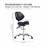 Grace&Grace Professional Saddle Stool Chair with Back Support, Rolling Saddle Ergonomic Stool Heavy Duty for Clinic Dentist Spa Massage Salons Studio (Black, Adjustble Back)