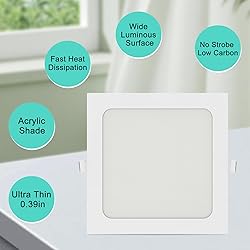 Aolyty 15W Ultra Thin LED Ceiling Panel Light 7.4" Recessed Square Downlight for Home, Office, Mall, Low Energy Consumption Non Dimmable 6000K